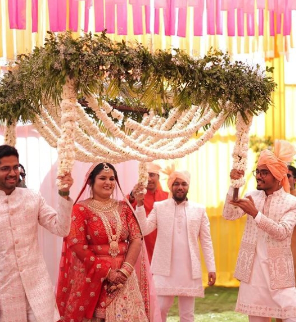 • Bride & Groom Entry Concepts: Royal walkways, phoolon ki chadar, cold pyro, live music, and dreamy stage effects.